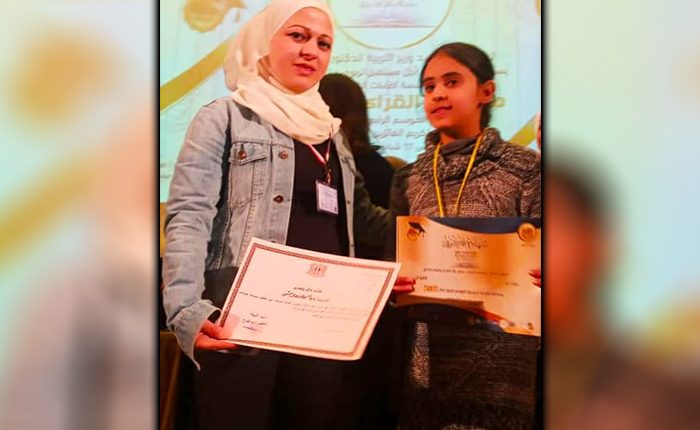 المدربة غدير الصياد الطالبة ميسم طة الصف الثامن مدرسة الكسوة الثانية للبنات حلقة ثانية الفائزة على مستوى محافظه ريف دمشق