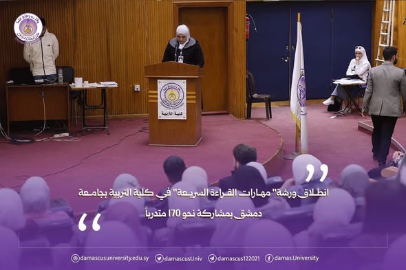 انطلاق ورشة “مهارات القراءة السريعة” في كلية التربية بجامعة دمشق بمشاركة نحو 170 متدرباً