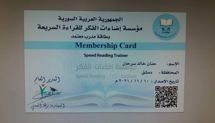 بطاقات المدربين المعتمدين لمؤسسة إضاءات الفكر للقراءة السريعةمدربين دمشق حنان خالد سرحان By إضاءات Last updated ديسمبر 22, 2021 Share Share FacebookTwitterGoogle+ReddItWhatsAppPinterestEmail