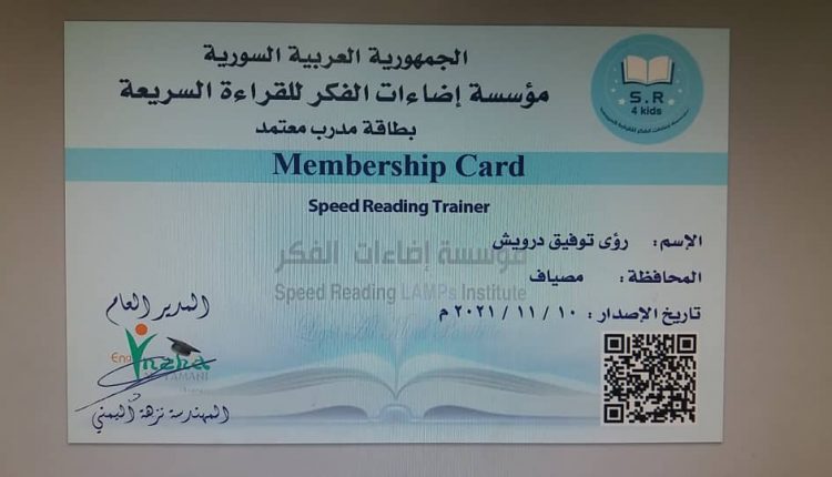 • بطاقات المدربين المعتمدين لمؤسسة إضاءات الفكر للقراءة السريعة