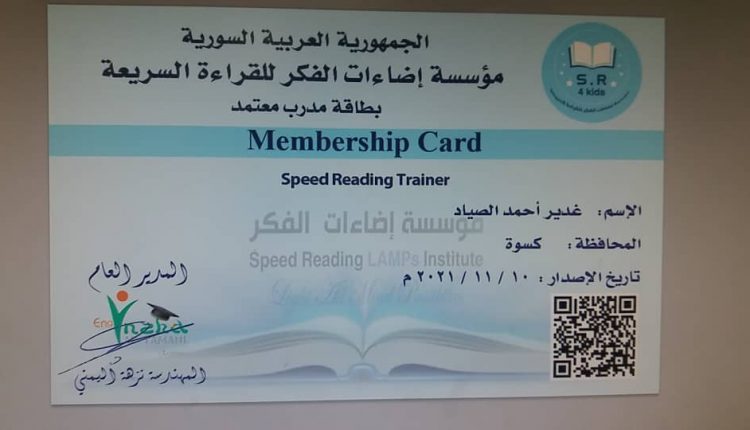 بطاقات المدربين المعتمدين لمؤسسة إضاءات الفكر للقراءة السريعة