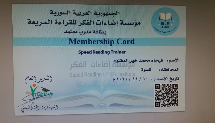 بطاقات المدربين المعتمدين لمؤسسة إضاءات الفكر للقراءة السريعة فيحاء محمد خير المظلوم By إضاءات Last updated ديسمبر 22, 2021 Share Share FacebookTwitterGoogle+ReddItWhatsAppPinterestEmail