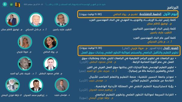 مشاركة المهندسة نزهة اليمني رئيس مؤسسة اضاءات الفكر للقراءة السريعة في مؤتمر المهندسين العرب في بيروت- لبنان بحث بعنوان: القراءة_السريعة_لمواكبة_التطور_العلمي_وتطوير_التعليم_الجامعي) بتنظيم لجنة الارشاد والتوجيه المهني بحضور اساتذة وقمم هندسية وتدريبية هامة..ضمن محور:
