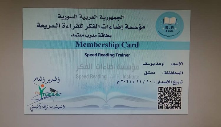 بطاقات المدربين المعتمدين لمؤسسة إضاءات الفكر للقراءة السريعةمدربين دمشق وعد يوسف By إضاءات On ديسمبر 22, 2021 Share Share FacebookTwitterGoogle+ReddItWhatsAppPinterestEmail